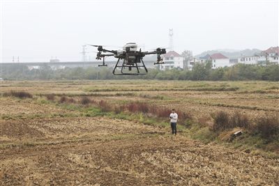 在江西省撫州市東鄉區鄧家鄉鄧家村,年輕的新農人陳艱華在操作農用無人機進行播種作業。