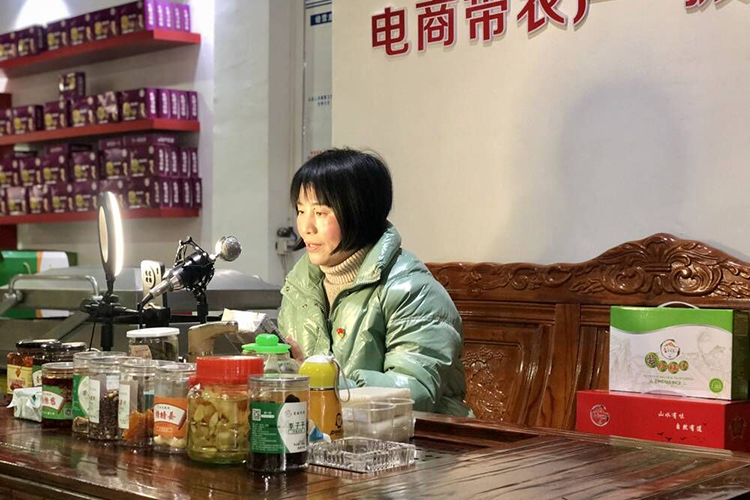 譚新萍正通過電商直播平臺賣山貨。 受訪者供圖