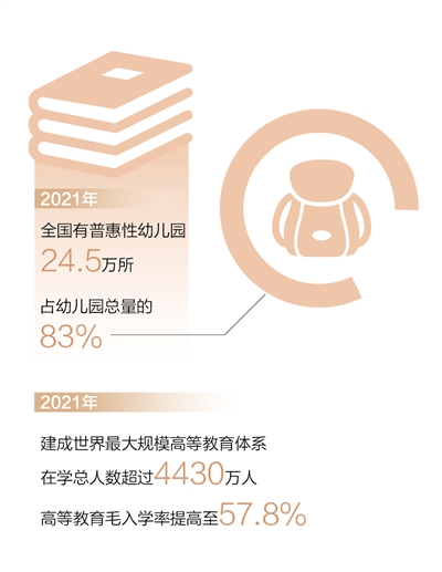 習近平總書記在北京大學師生座談會上強調:“‘國勢之強由于人,人材之成出于學?!囵B社會主義建設者和接班人,是我們黨的教育方針,是我國各級各類學校的共同使命?!蹦壳?,我國教育普及程度總體上穩居全球中上收入國家行列,其中,義務教育和學前教育的普及程度達到高收入國家平均水平,高等教育進入國際社會公認的普及化階段,勞動年齡人口的平均受教育年限達10.9年,每年全國高等學校和職業院校輸送數以千萬計畢業生,為全面建設社會主義現代化國家提供了重要支撐,拓展了加快建設教育強國之路。
