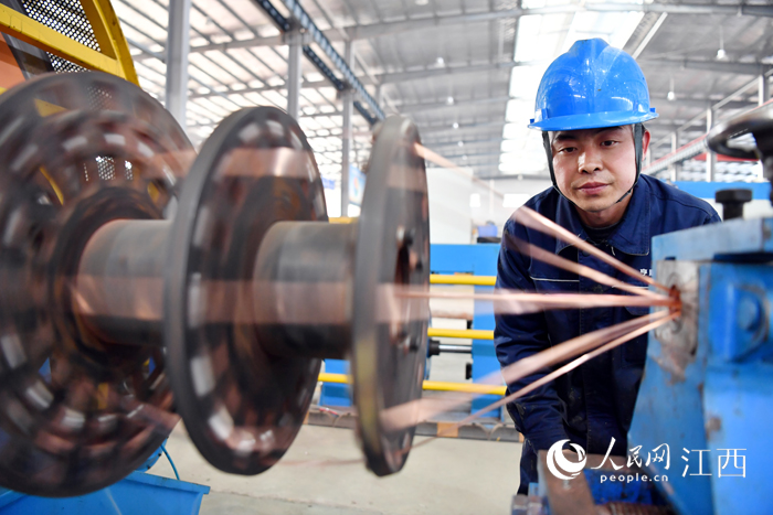 近年來,豐城市招商引資變來者皆有意為精挑細選,為發展升級注入強勁動力。圖為循環經濟產業園一家再生銅加工企業內,工人正在生產線上操作。人民網時雨攝