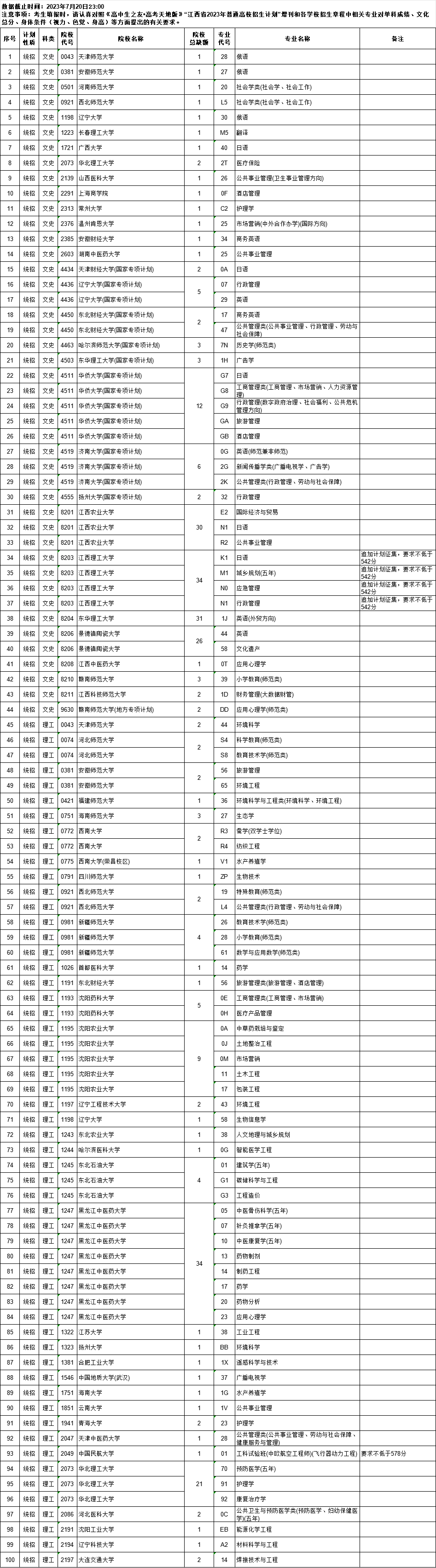 江西省2023年普通高校招生第一批本科文史、理工類缺額院校及專業統計表