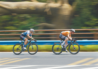 9月12日,參賽選手在第五賽段比賽中。新華社記者 萬 象攝