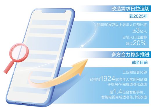 截至目前,工業和信息化部已指導1924家老年人常用網站和手機APP完成適老化改造并通過評測,超過1.4億臺智能手機、智能電視完成適老化升級改造,推出“長輩模式”“關懷模式”,升級語音播報、方言識別、全鍵盤操作等適老助老特色功能,覆蓋新聞資訊、社交通信、生活購物等老年人生活高頻場景,受到老年人廣泛好評。