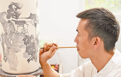 江西省景德鎮市青年工藝美術師在繪制瓷器紋飾。本報記者 雷 聲攝