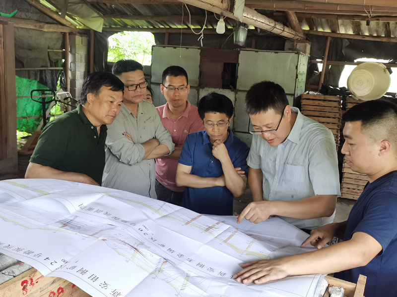 謝剛(右一)正在跟專家介紹找礦成果。江西省地質局供圖