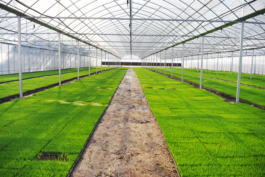 在江西省九江市永修縣白槎鎮柒月農機服務專業合作社育秧工廠內,一排排生機勃勃、綠意盎然的秧苗長勢喜人。李攀攀攝