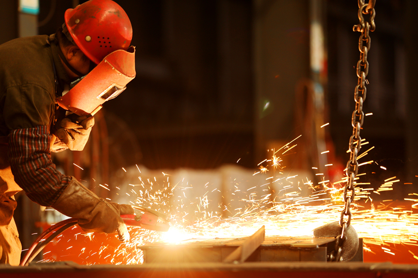 江西省宜春市上高縣金塔鋼結構有限公司生產車間內,工人們正在忙碌著。陳旗海攝