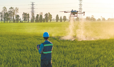 “叮!”新疆喀什地區伽師縣的一片麥田里,大疆T60農業無人機正在噴灑農藥?!斑@款無人機能自動識別邊界,生成最優航線,200畝麥子,20多分鐘就能打完藥?!狈N糧戶向東感慨,無人機植保省水、省藥、省時、省力,比人工打藥快多了。