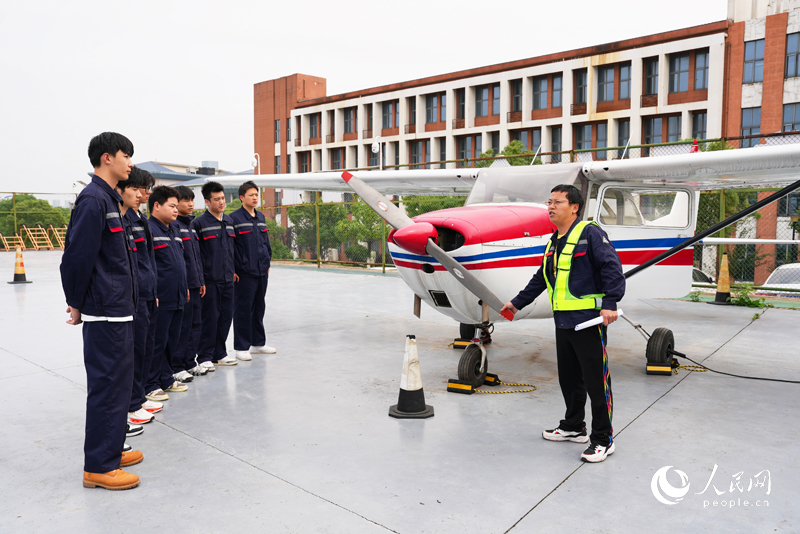 江西飛行學院教師正在講解飛機螺旋槳工作原理。人民網記者 毛思遠攝