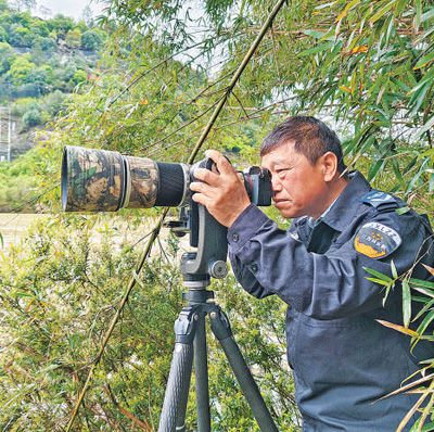 肖冬樣在拍攝中華秋沙鴨。本報記者 周 歡攝