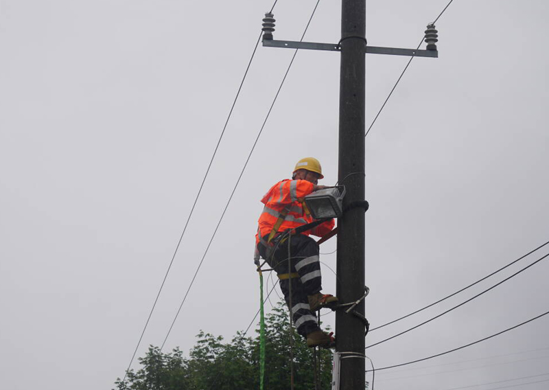 鷹潭供電段景德鎮電力工區工長范明華在皖贛線K408+140-200區間21#電桿處安裝照明燈。姜靚攝
