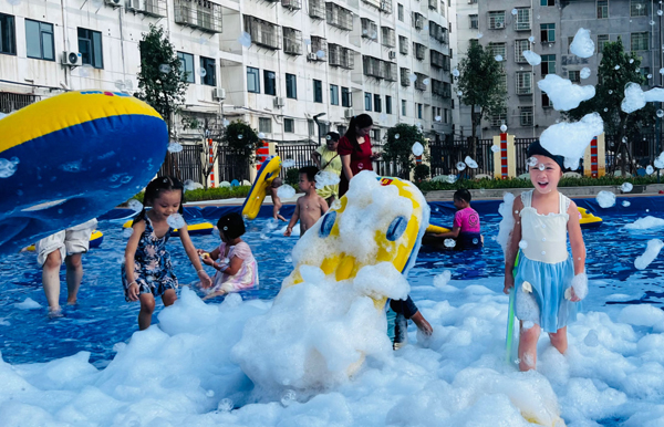 孩子們猶如歡快的小魚,盡情地在泡沫的海洋中暢游嬉戲。吳海倩攝