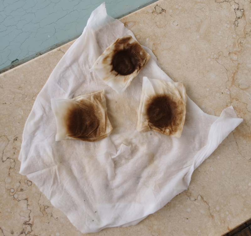 網友曬出包住水龍頭的綿柔紙巾。 留言網友供圖