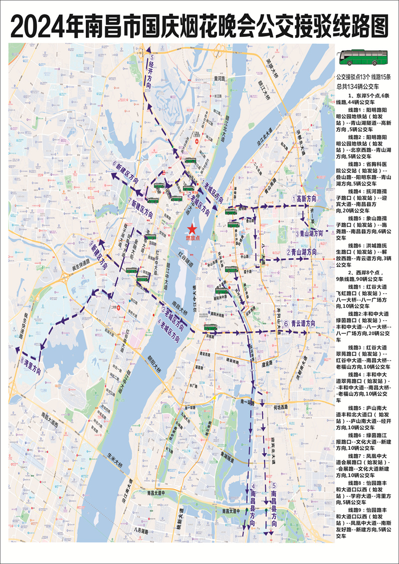 2024年南昌市國慶煙花晚會公交接駁線路圖