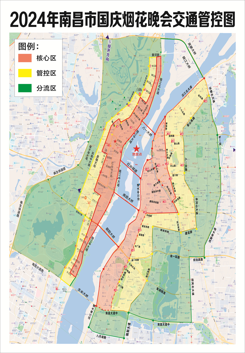 2024年南昌市國慶煙花晚會交通管控圖