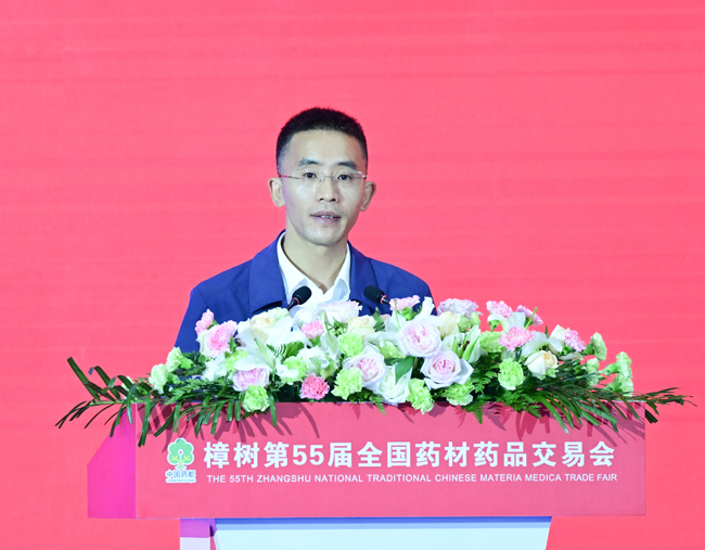 樟樹市委書記曾海在第55屆全國藥材藥品交易會開幕式上致辭。人民網記者 時雨攝