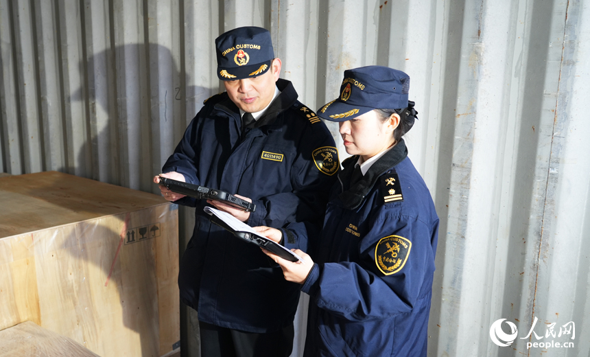 海關關員正對出口設備進行查驗。人民網記者 毛思遠攝