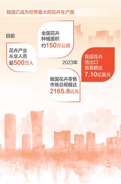 中國花卉協會統計數據顯示,我國是全球最大的康乃馨、百合切花生產國,第二大月季和菊花切花生產國。目前,全國花卉種植面積約150萬公頃,花卉產業從業人員超500萬人?;ɑ墚a業,正激活經濟增長新動能。
