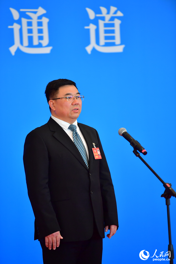 江西省政協委員、中國石化九江分公司總經理蔡智在“委員通道”接受采訪。人民網記者 時雨攝