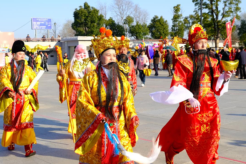 江西九江彭澤縣新春長江文化民俗踩街活動現場。彭琴攝