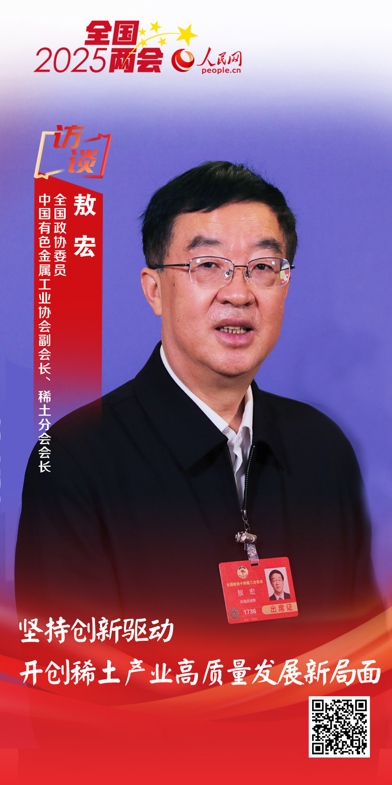2025年是“十四五”規劃收官之年,也是進一步全面深化改革重要一年。如何高質量完成“十四五”規劃目標任務,為實現“十五五”良好開局打牢基礎,是社會各界關注的焦點。稀土產業如何促進構建高質量發展新格局,推動科技創新和產業創新深度融合?2025年全國兩會期間,全國政協委員,中國有色金屬工業協會副會長、稀土分會會長敖宏接受了人民網記者專訪。