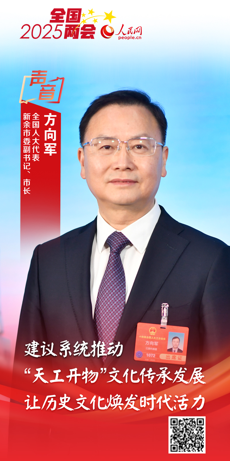 如何傳承和弘揚這一中華優秀傳統文化,深度挖掘“天工開物”文化的創新基因,讓歷史文化煥發時代活力?2025年全國兩會期間,全國人大代表,新余市委副書記、市長方向軍接受記者采訪時表示,建議國家層面給予政策支持,系統推動“天工開物”文化傳承發展。