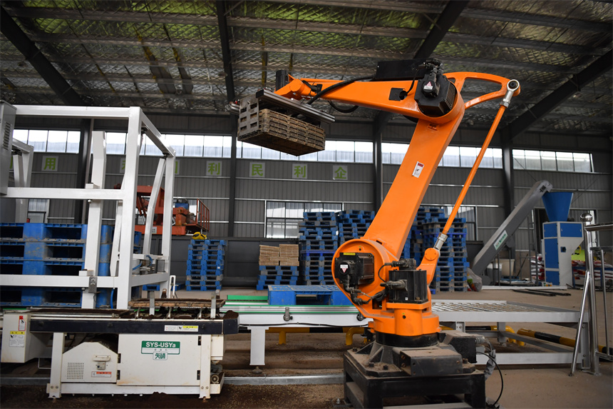 智能育秧車間內,機器人正在擺放秧盤。人民網記者 時雨攝