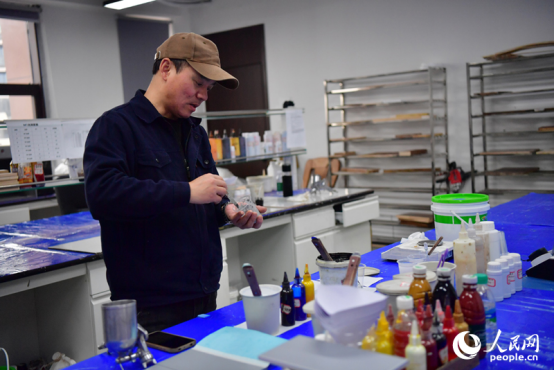 奇點勢能實驗室內,實驗人員正在配置水性涂料。人民網記者 時雨攝