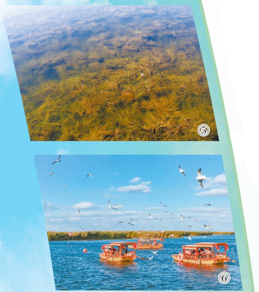 湖區生物多樣性明顯提升,目前共有魚類20多種,鳥類260多種600多萬只。2023年12月,烏梁素海入選國家重要濕地名錄。(見圖⑥)
