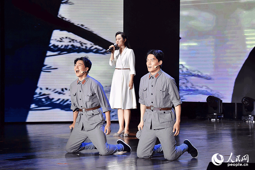 江西師范大學的師生們激情演繹《紅土魂|十七棵松》。人民網記者 時雨攝