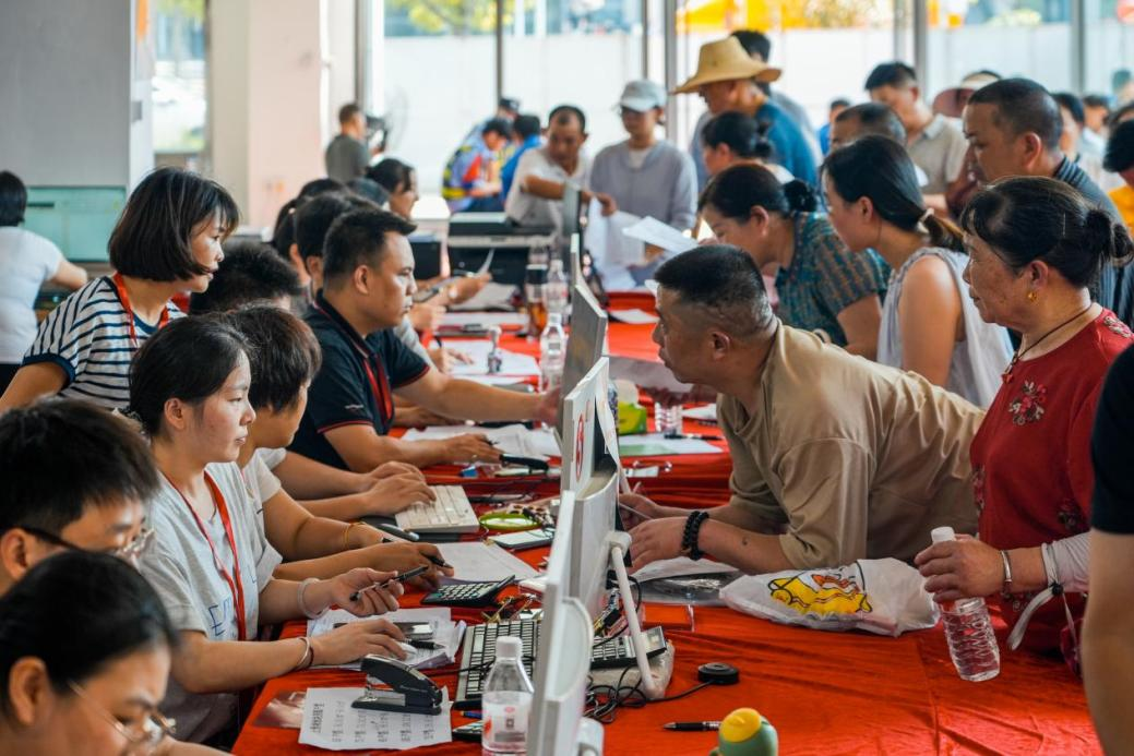 選房現場,村民們正在提交審核資料。人民網 涂詩軒攝