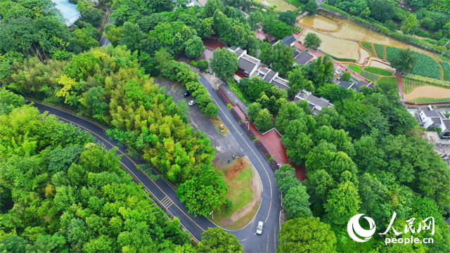 大龍村丫山,通村公路沿線綠樹成蔭、民宿林立,許多游客驅車前來游玩。人民網 朱海鵬攝