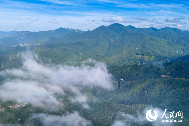 航拍大余丫山,云霧繚繞宛若仙境。人民網 龍楚良攝
