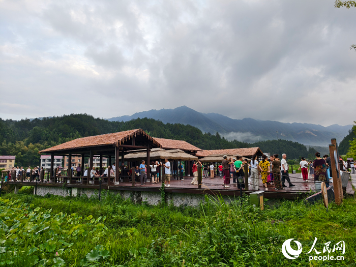 靖安縣中源鄉“避暑小鎮”,傍晚時分,游客們在戶外散步。人民網記者 時雨攝