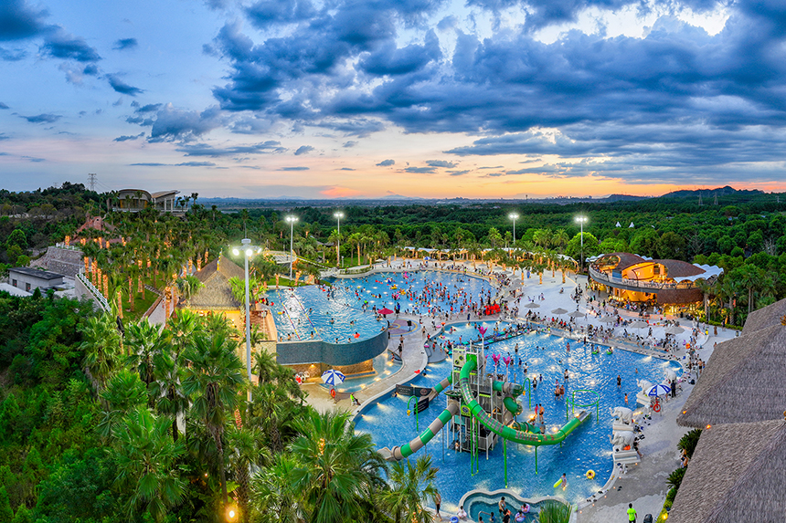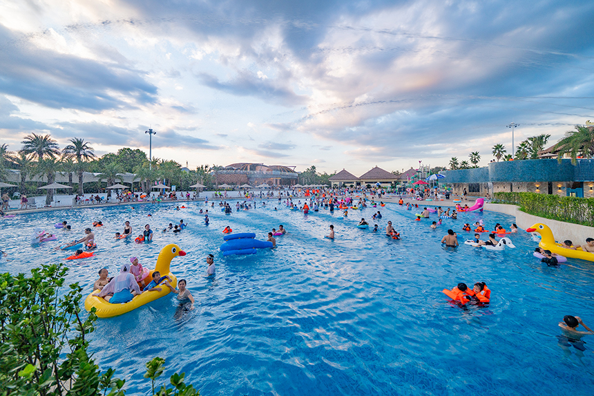 大型泳池成為八方游客盛夏納涼消暑的樂園。