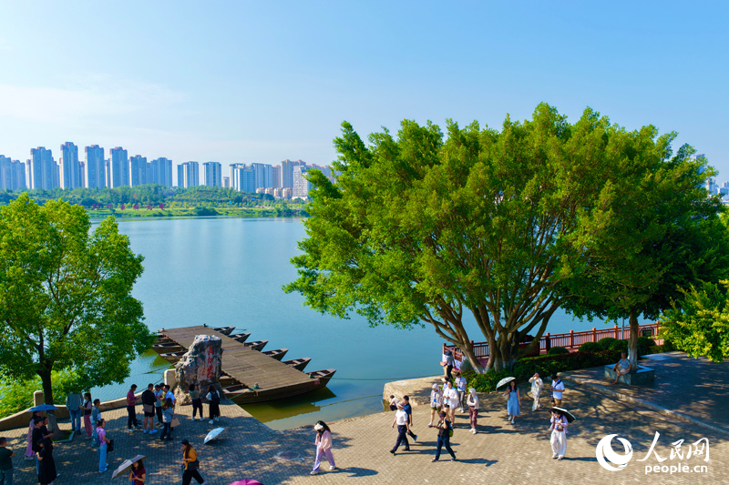 許多游客來到江西省于都縣中央紅軍長征出發地紀念園內的“長征渡口”參觀游覽。人民網 朱海鵬攝