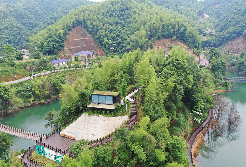 圖為藏于湖山深處的地球倉民宿。夏孟遷攝