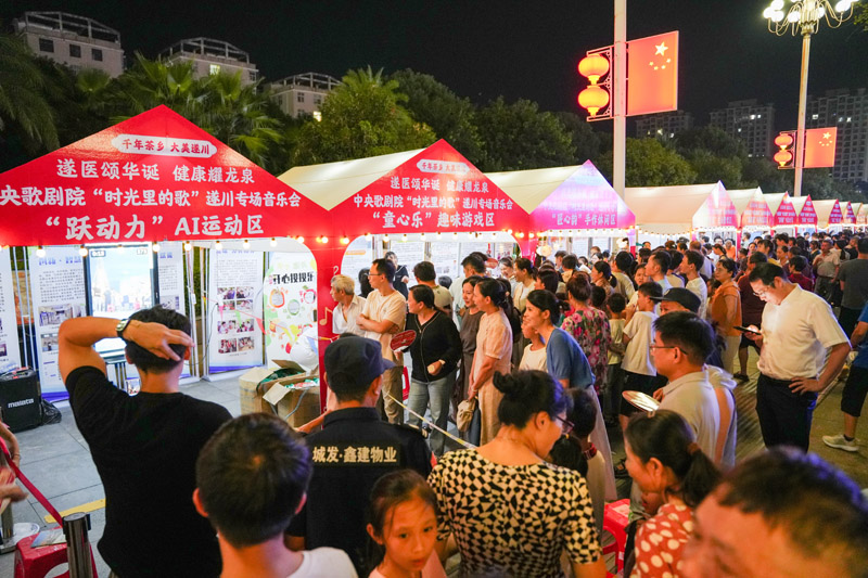 國慶假期期間,江西省吉安市遂川縣文化藝術中心廣場舉辦“遂醫頌華誕 健康耀龍泉”健康夜市,為市民打造了一場別開生面的健康嘉年華。