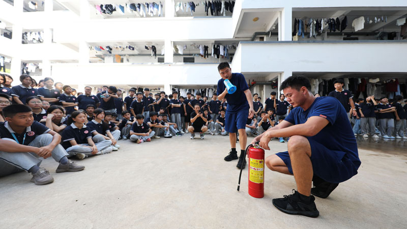 近日,在位于江西省撫州市東鄉區小璜鎮的申浩實驗學校,消防員在為學生們進行互動應急演練。連日來,東鄉區小璜鎮新時代文明實踐所聯合鎮應急消防站、派出所、退役軍人志愿者、基干民兵開展應急演練進校園活動,通過開展消防演練、宣講消防安全知識等方式,增強師生應急避險與安全自救能力。(饒方其攝影報道)