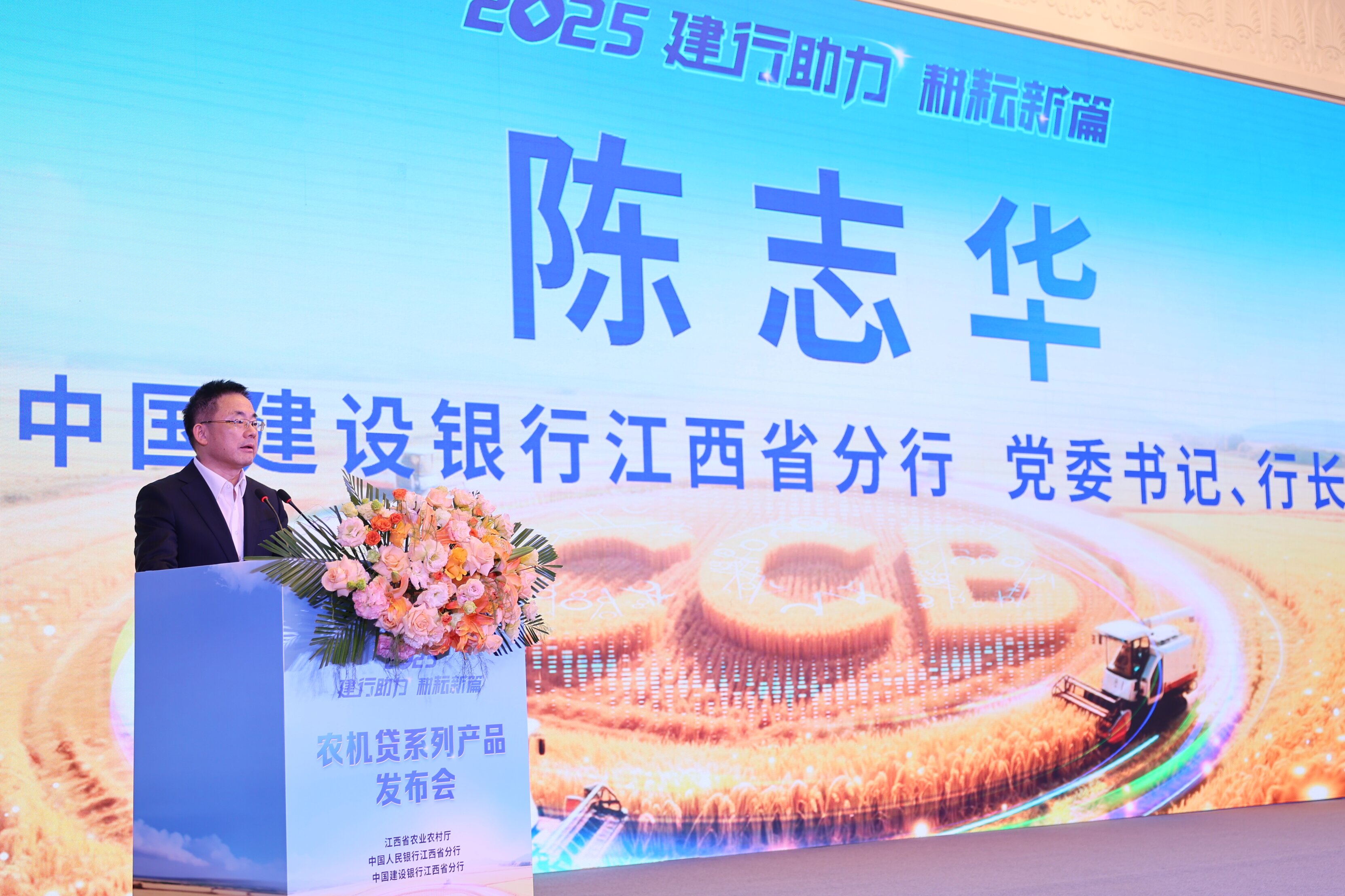 橙黃橘綠,稻浪翻金。10月30日,中國建設銀行江西省分行聯合江西省農業農村廳、中國人民銀行江西省分行,在南昌前湖酒店隆重舉辦“2025 建行助力 耕耘新篇——‘農機貸’系列產品發布會”。