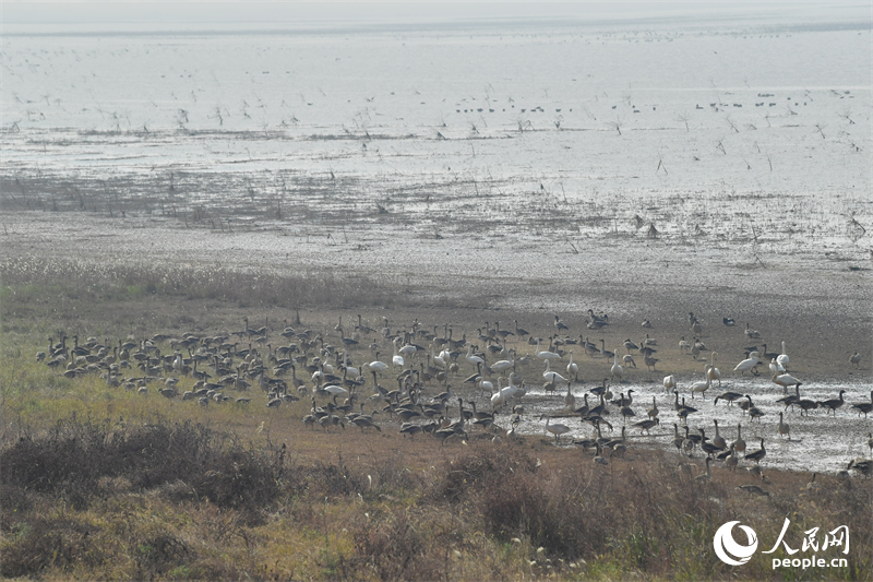 鄱陽湖永修吳城境內的候鳥在湖邊棲息覓食。人民網記者 時雨攝