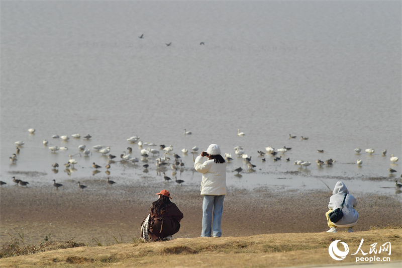 游客們在永修吳城近距離觀看各類候鳥。人民網記者 時雨攝